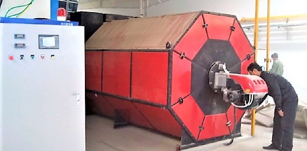 燃烧所需的空气,经燃烧机内鼓风机进入燃烧室帮助燃烧,高温烟气经热风发生器内的耐高温换热系统,换热降温后排出发生器,再经烟道排入大气。